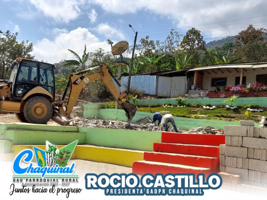 El GAD Parroquial de Chaquinal, bajo el liderazgo de nuestra presidenta, la Sra. Rocío Castillo, ha dado inicio a la construcción de un nuevo parque infantil en el espacio donde antes funcionaba el Infocentro.